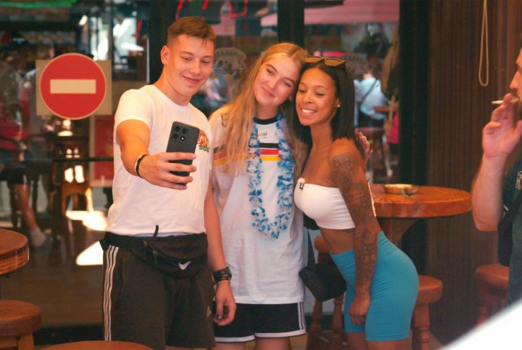 Während ihres Drehs für neuen Social-Media-Content macht Malin (r.) Fotos mit ihren Fans, die sie auf dem Ballermann trifft.