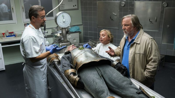 Eine Leiche in Ritterrüstung, das sahen selbst Karl-Friedrich Boerne (Jan Josef Liefers, links), Silke Haller (ChrisTine Urspruch) und Kommissar Frank Thiel (Axel Prahl) noch nie auf einem Seziertisch.