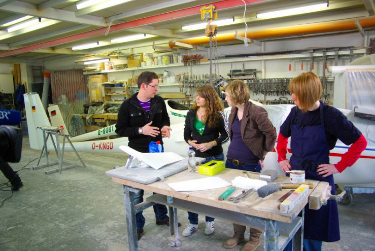 Present progressive: They are working - Plane maintenance