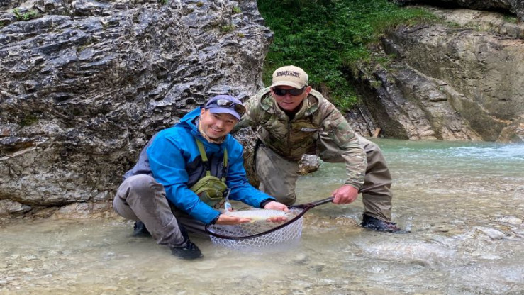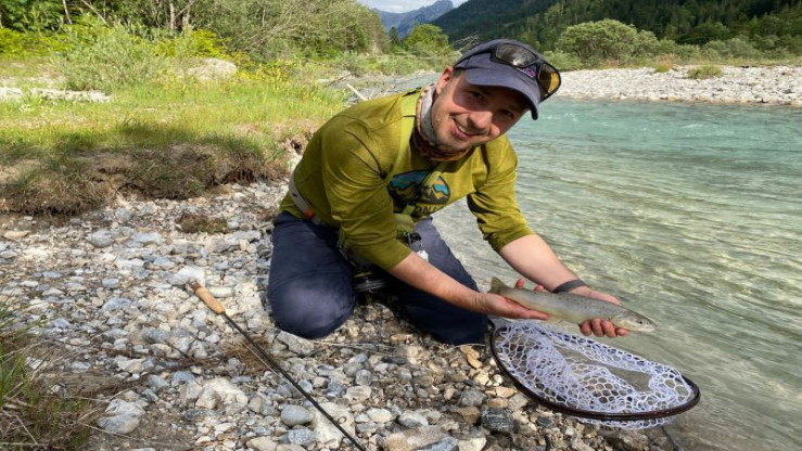 In Deutschland nächtigen und in Österreich Fliegenfischen - das hieß es für Elmar Elfers und seine Frau Simone. Die beiden reisten Anfang Juli von Hamburg in den Süden der Republik. Ziel war ein Gasthof direkt an der Isar. Direkt gegenüber wohnt Pächter und Guide Anderl Ganslmaier. Er ist für das Revier vom Rißbach, der in die Isar mündet, und seine Nebengewässer verantwortlich. In den alpinen Bächen kommen keine Regenbogenforellen vor. Wilde Bachforellen fanden ihre Heimat in den klaren Gewässern. Bachsaiblinge kommen vereinzelt vor, werden aber entnommen. So soll der Lebensraum allein für die Bachforelle erhalten bleiben. Leichte Fliegenruten in Klasse 3 und eine bunte Auswahl an Trockenfliegen bildeten das Set-up am Rißbach. Schwarze Rehhaar-Sedge und Chernobyl Ant trumpften im schnellen Wasser besonders auf und verführten so manche Bachforelle. Für tief stehende Fische knoteten die Fliegenfischer auch gerne den sogenannten Koppen-Killer ans Vorfach. Der Streamer bringt aufgrund von Tungsten-Kopf ordentlich Gewicht auf die Waage und sinkt schnell Richtung Grund - wo die Forellen lauern. Neben den vielenExemplaren in Durchschnittsgröße fing Simone ein echtes Bachmonster. Eines abends stieg die Forelle direkt vor ihren Füßen. Wieder kam die schwarze Rehhaar-Sedge zum Einsatz. Kaum landete sie vor einer flachen Kiesbank auf der Oberfläche, durchbrach auch schon das Forellenmaul das Wasser und schlürfte das Muster genüsslich ein. An der feinen Rute bekam Simone mächtig was zu tun und hatte Glück, dass die große Bachforelle nicht stromab flüchtete. Alles ging gut und ein Traumfisch rutschte in die Keschermaschen. Schnell machte ihr Fang die Runde und zeigte mal wieder, dass auch kleine Bäche echte Großfische bieten können. Eine Woche mit erholsamen Stunden am Wasser ging viel zu schnell vorbei. Eine Wiederkehr zum Fischen im Karwendel ist nicht ausgeschlossen, es gibt noch viel zu entdecken.
