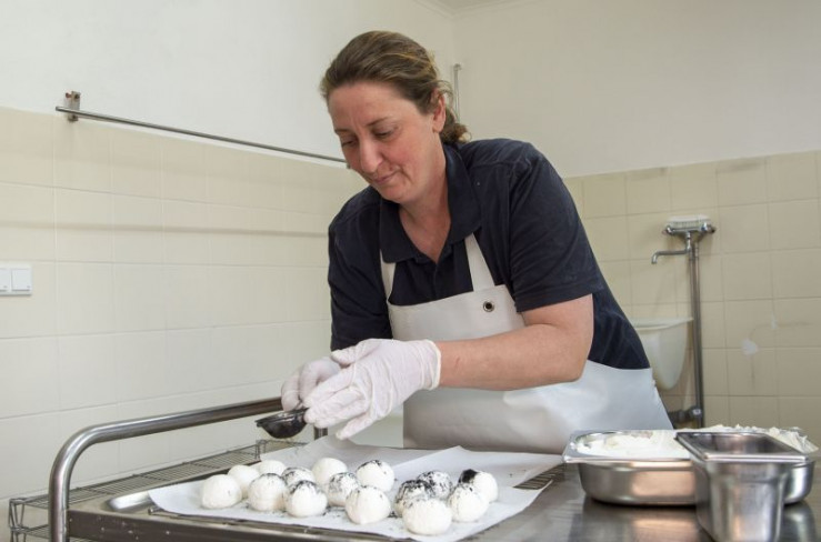In der hofeigenen Käserei stellt Ilona Kuhnen nach selbstentwickelten und geheimen Rezepten Ziegenkäse her.