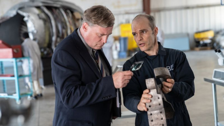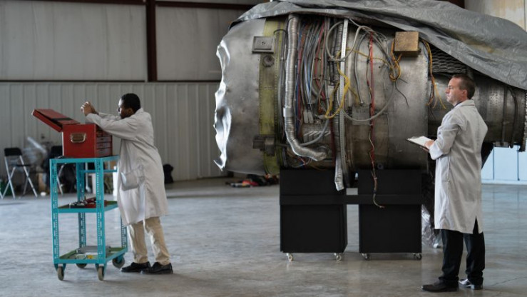 Techniker der französischen Untersuchungsbehörde BEA untersuchen eines der abgerissenen Triebwerke.