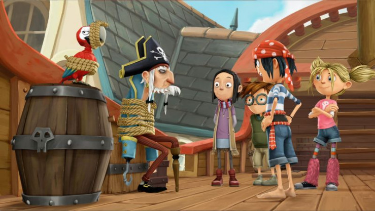 Stell' dir vor, nebenan ziehen neue Nachbarn ein, und ZACK steht da ein riesiges Piratenschiff im Vorgarten! So geht es Mathilda, und Piratenjunge Jim wird schnell zu ihrem besten Freund. Die Piraten von nebenan bringen richtig Schwung in die verschlafene Küstenstadt Schnarch am Deich: Der Piraten-Opa verlässt das Schiff nach Möglichkeit nie, denn an Land wird er "landkrank". Jims kleine Schwester Goldstück ist eine wilde kleine Piratin, und die Eltern Jolley-Rogers finden es ganz normal, wenn ihre Kinder auf Beutezug gehen und auch regelmäßig am Strand Schätze finden. Gemeinsam mit dem Hund Knochen und dem Papagei Krächz bringen sie Frau Biber immer wieder so richtig auf die Palme. Die wohnt ebenfalls in der Nähe und wünscht sich, dass die Familie Jolley-Rogers so schnell wie möglich wieder aus der Stadt verschwindet. Zusammen mit ihren Schulfreunden erleben Matilda und Jim wilde Abenteuer an Land und zur See. Und wehren sich dabei immer wieder erfolgreich gegen Frau Biers Gemeinheiten. Nach Buchvorlage von "Die Piraten von nebenan" von Jonny Duddle