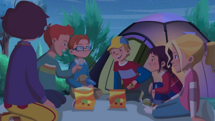 Die Jungs quetschen sich ins kleine Dreimannzelt, und schon lautet die Frage: Wer wird die Nacht im Freien unbeschadet überstehen - Jungs oder Mädchen? Es ist klar, dass sie sich gegenseitig das Leben so schwer wie möglich machen werden.