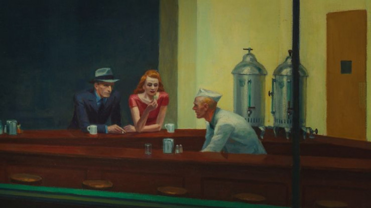 Hoppers Werke fangen Einsamkeit, Ruhe und subtile Dramatik des Alltags ein. Restaurants, Straßen, Wohnungen und Tankstellen werden zu Bühnen für Menschen, die oft allein oder in gedämpfter Interaktion gezeigt werden. Das Spiel von Licht und Schatten, klare Formen und präzise Perspektiven verleihen seinen Szenen eine fast filmische Intensität. Bilder wie "Nighthawks" und "Chop Suey" zeigen, wie Hopper scheinbar gewöhnliche Orte in kraftvolle Bildräume verwandelt.