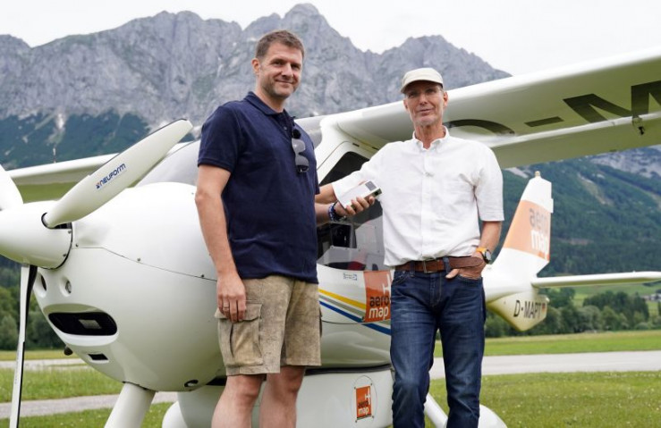 Bernd Cresnar und Geopilot Tom Meißl bereit für die Rasterfahndung der Borkenkäfer via Flugzeug.