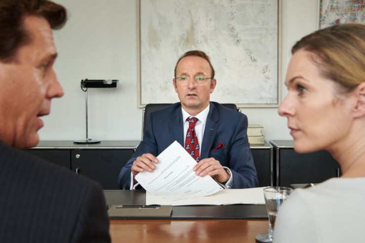 Die unorthodoxe Millionärsgattin Eva Klüber tobt, als sich ihr Mann Rainer von ihr scheiden lässt und sie laut Ehevertrag nichts vom gemeinsamen Vermögen behalten soll.