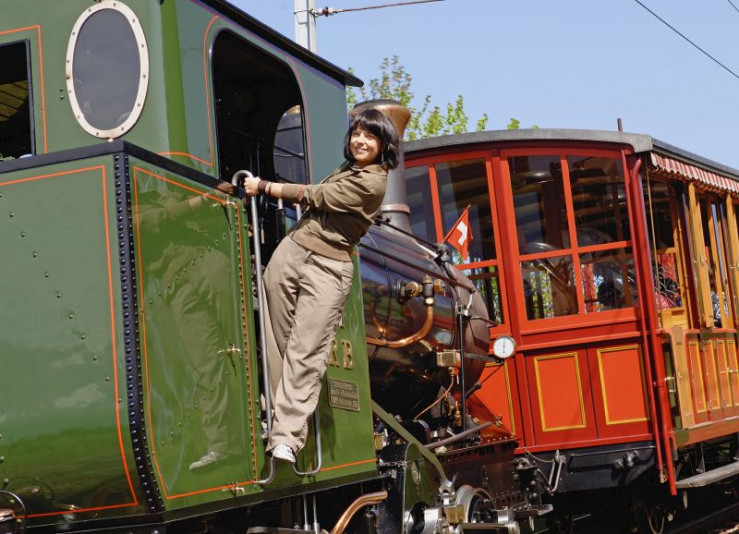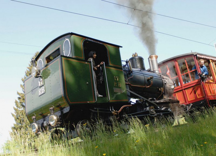 Mona Vetsch heizt den Kessel der alten Rigi-Dampflok ein
