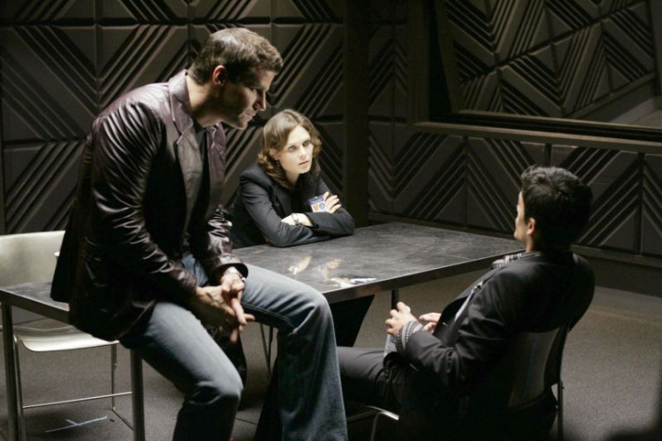 Booth (David Boreanaz, l.) und Brennan (Emily Deschanel) verhören Antonio Ramos (Andres Londono, r.).