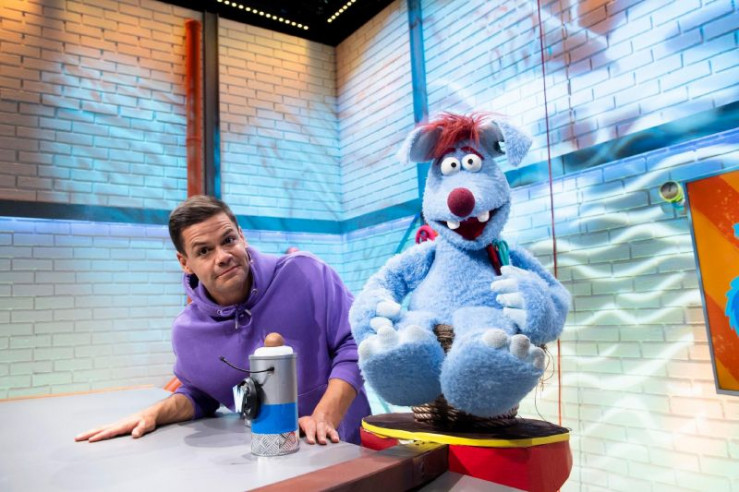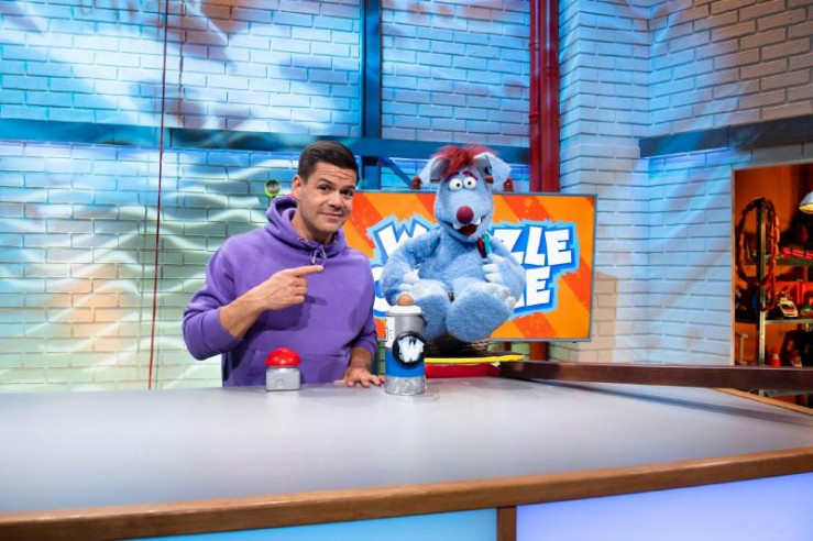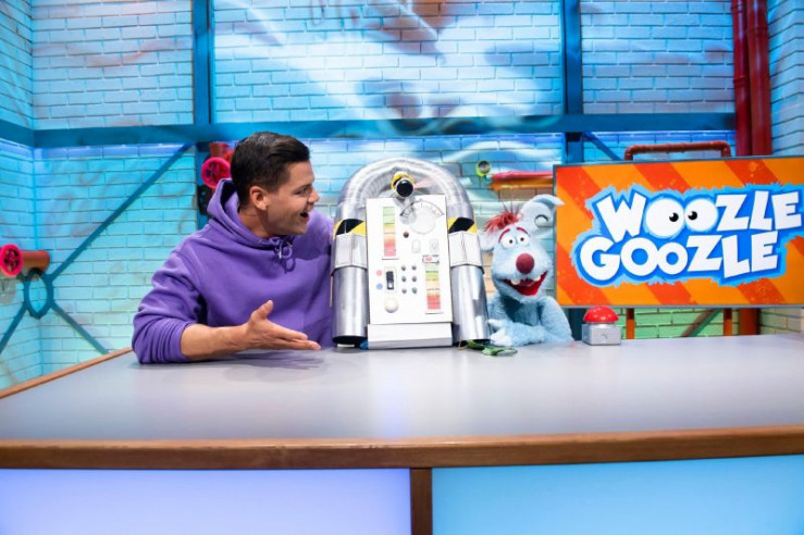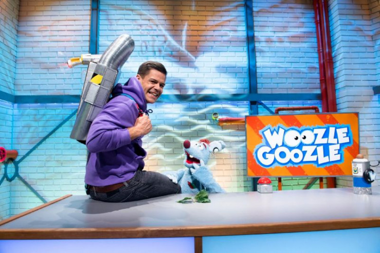 Woozle (li.) möchte etwas erfinden, damit Flüsse in Zukunft superschnell überwunden werden können und niemand mehr auf Brücken im Stau stehen muss. Vielleicht war es jedoch keine ganz so gute Idee, die neuen Erfindungen an einem reißenden Fluss mit Simón (re.) mitten im Studio zu testen.