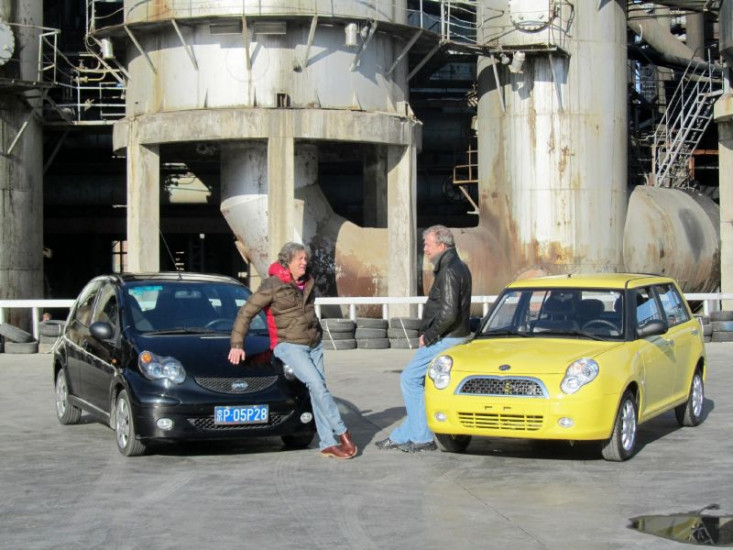 James May (l.) und Jeremy Clarkson sind nach Peking gereist und diskutieren u.a. über die Modelle Lifan 320 und BYD F0.