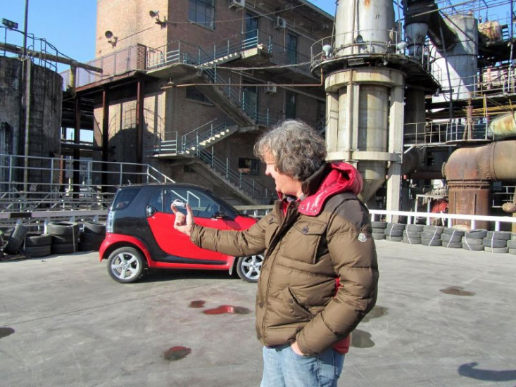 James May mit einem Minimodel und der Orginialversion des Smart fortwo.