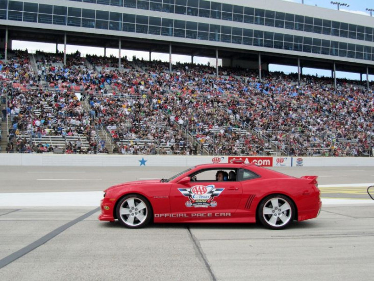 Richard Hammond in einem Chevrolet Camaro Pacecar auf dem Texas International Speedway.
