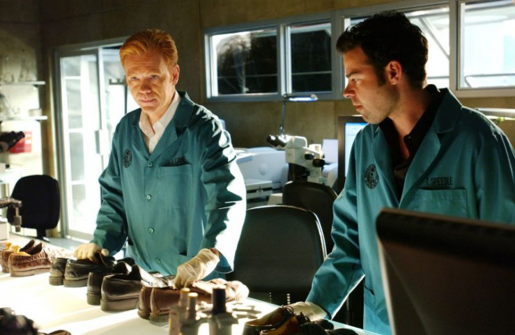 Nachdem erwiesen ist, dass der Täter bei dem Kampf mit dem Opfer ins Wasser gefallen ist, untersuchen Lt. Horatio Caine (David Caruso, li.) und Tim Speedle (Rory Cochrane) die Schuhe der Verdächtigen, um eventuelle Salzrückstände zu finden. +++ Die Verwendung des sendungsbezogenen Materials ist nur mit dem Hinweis und Verlinkung auf RTL+ gestattet. +++