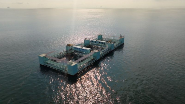 Nachhaltige Fischzucht: Diese Offshore-Aquafarm generiert ihren Strom selbst aus den Wellen.