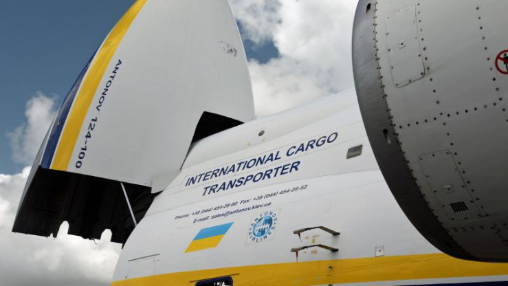 Das Frachtflugzeug kann sowohl über den hochklappbaren Rumpfbug als auch über die Heckrampe beladen werden.