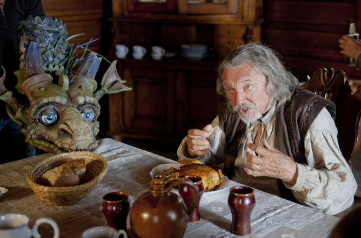 Der Drache Drako hilft dem Großvater (Karel Gott) in der Schmiede - und beim Essen.