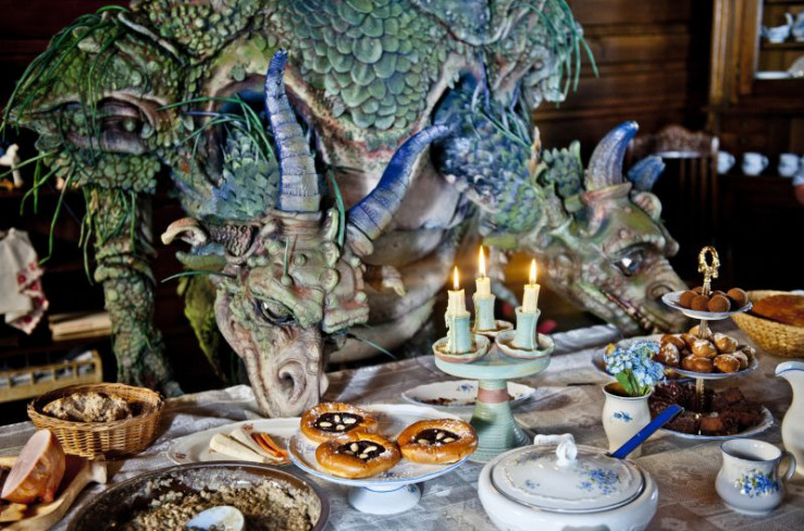 Der zweiköpfige Drache Drako kann leckerem Essen nicht widerstehen.