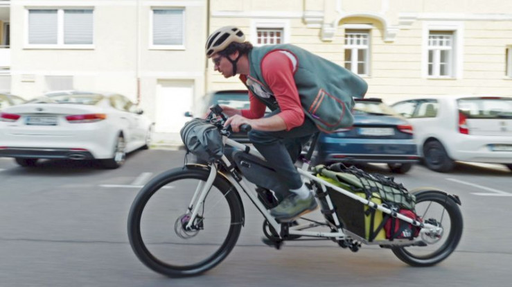 YouTuber-Fahrradtester Felix Kuffner prüft das Multifunktionsfahrrad des Münchner Tüftler Marcel Sayle u. a. auch im Stadtverkehr.