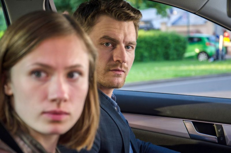 Die Beamten (Alina Levshin/Benjamin Kramme) teilen Lisa Kranz (Henriette Confurius) und ihrem Freund Michael Dankert (Florian Bartholomäi) mit, dass ihre Mitbewohnerin Anna Siebert ermordet wurde.