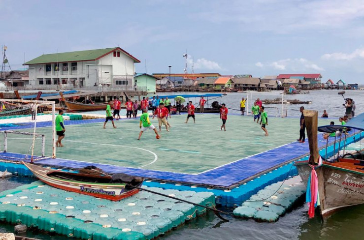 Der schwimmende Fußballplatz ist in ganz Thailand bekannt.