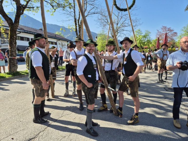 Burschenverein Rottach beim Maibaumaufstellen.