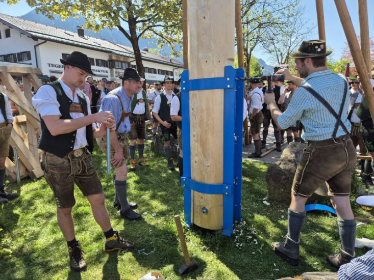 Burschenverein Rottach beim Maibaumaufstellen.