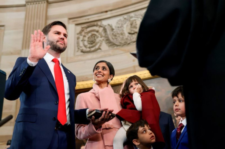 20. Januar 2025: J.D. Vance schwört seinen Amtseid als US-Vizepräsident in der Rotunda des US-Kapitols in Washington D.C.. Neben ihm seine Frau Usha Vance und seine drei Kinder.