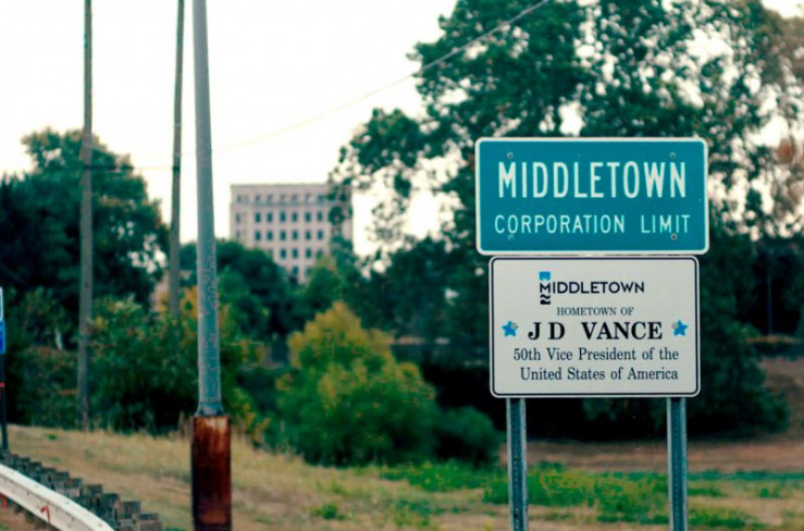 Ortseingangsschild von Middletown, Ohio, der Heimatstadt von JD Vance im sogenannten Rust Belt Amerikas.