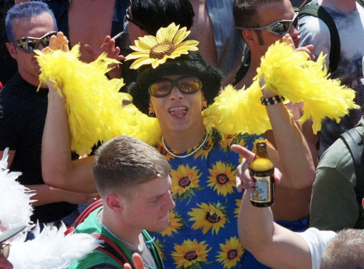 Heiße Rhythmen und hochsommerliche Temperaturen bringen bei der elften Love-Parade in Berlin am 10. Juli 1999 mehr als eine Million Raver ins Schwitzen.