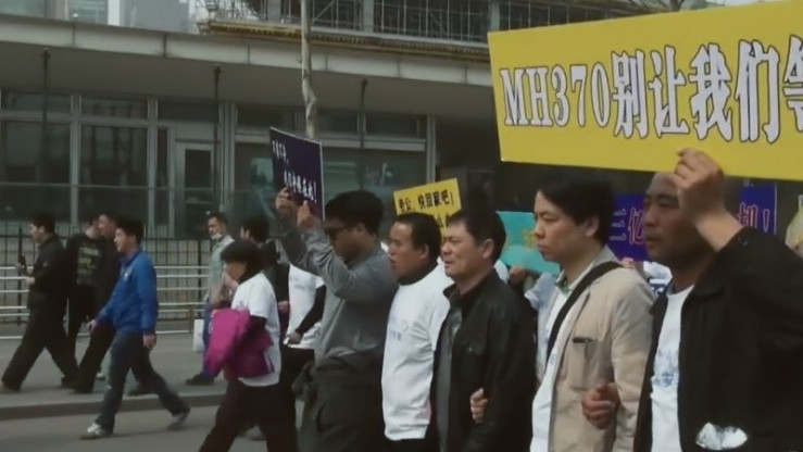 Pure Verzweiflung: In Peking gehen Angehörige der vermissten Passagiere auf die Straße. Sie vermuten, dass die Behörden ihnen die Wahrheit verschweigen.