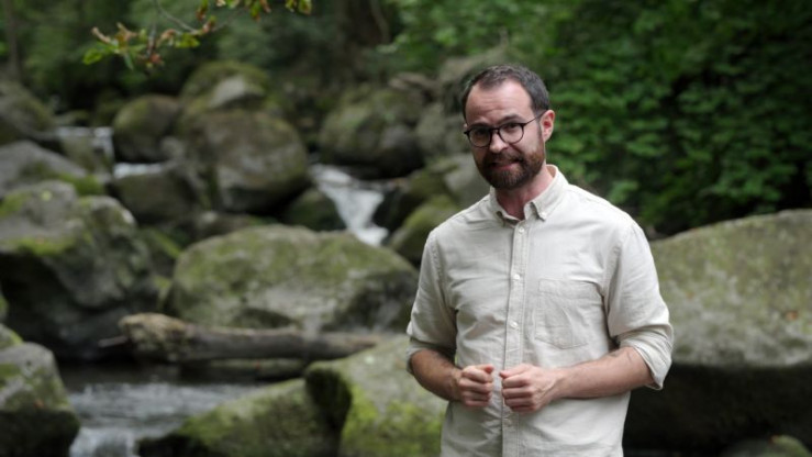 Im Eifeler Wald bei Gerolstein finden sich Spuren eines urzeitlichen Meeres. Wissenschaftsjournalist Niklas Kolorz (r.) geht mit Geologe Achim Herf (l.) auf Spurensuche.