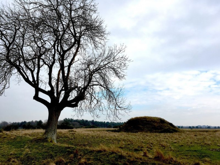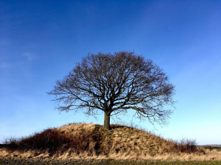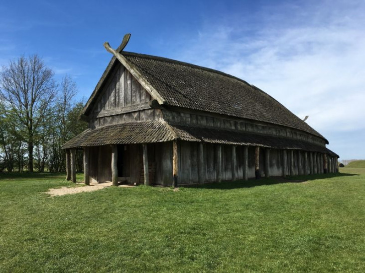 Typisches Hügelgrab im dänischen Lejre. Die Langhäuser oder Königshallen befanden sich meist in der Nähe der Hügelgräber. In der Nähe wurden höchstwahrscheinlich die Überreste von Heorot gefunden, die Königshalle des legendären König Hrothgar.
