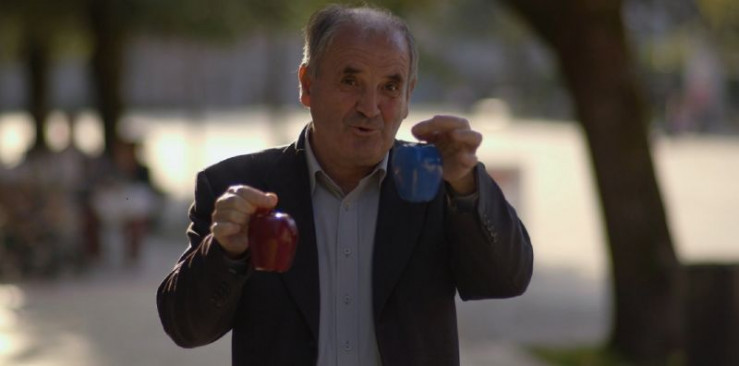Physiker Dragan Hajdukovic erklärt die Gravitationstheorie mithilfe von Äpfeln.