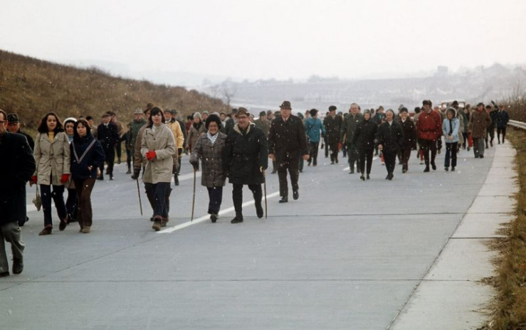 Die Bundesregierung beschließt in der Ölkrise vier autofreie Sonntage. Autobahnen und Landstraßen verwandeln sich in Spazierwege.