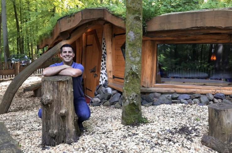 Andreas Gehrke vor dem Hobbithaus von Manfred Köhnlein und Sanni Diesner.