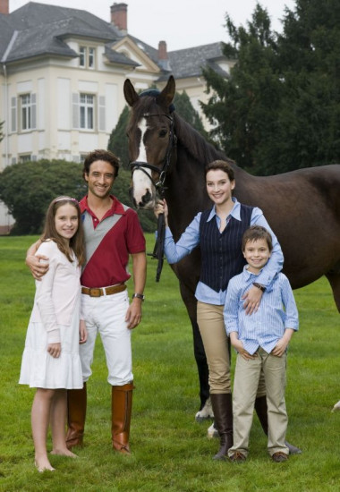 Martine La Rocca (Gunther Gillian, 2. v. links) mit seiner Frau Elena (Jana Klinge, rechts) und ihren Kindern Cinzia (Elena von Eysmondt) und Carlos (Luca Jochen).