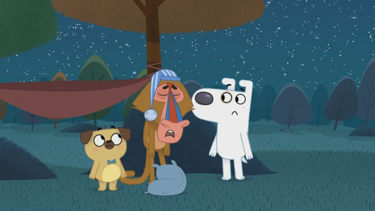 Damit die Ladenmäuse endlich Ruhe geben, zückt Dog eine Gutenachtgeschichte. Doch die Mäuse sind nicht die einzigen, die bei der schlummrigen Reise um die halbe Welt, zum Mond und wieder zurück, ins Land der Träume gleiten.