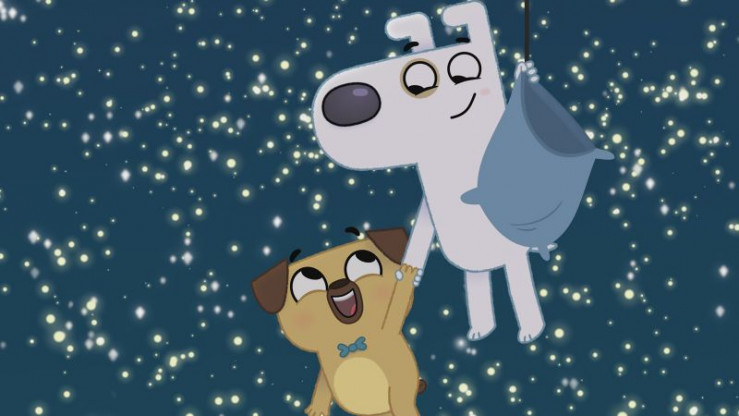 Dog und Puck bringen den Kindern den Mondstaub, der sie in das Traumland bringt.