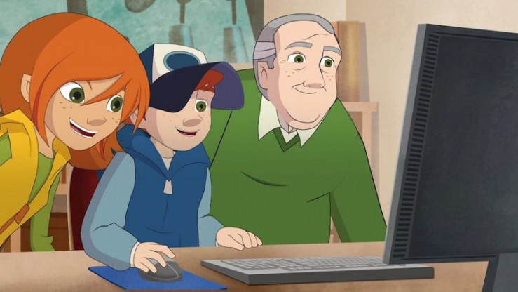 Der Opa von Steffi und Radieschen wurde von einem Betrüger um seine Ersparnisse gebracht. Die Geschwister recherchieren dazu mit ihm am Computer.