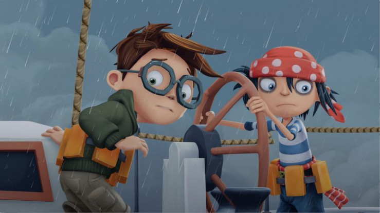 Stell' dir vor, nebenan ziehen neue Nachbarn ein, und ZACK steht da ein riesiges Piratenschiff im Vorgarten! So geht es Mathilda, und Piratenjunge Jim wird schnell zu ihrem besten Freund. Die Piraten von nebenan bringen richtig Schwung in die verschlafene Küstenstadt Schnarch am Deich: Der Piraten-Opa verlässt das Schiff nach Möglichkeit nie, denn an Land wird er "landkrank". Jims kleine Schwester Goldstück ist eine wilde kleine Piratin, und die Eltern Jolley-Rogers finden es ganz normal, wenn ihre Kinder auf Beutezug gehen und auch regelmäßig am Strand Schätze finden. Gemeinsam mit dem Hund Knochen und dem Papagei Krächz bringen sie Frau Biber immer wieder so richtig auf die Palme. Die wohnt ebenfalls in der Nähe und wünscht sich, dass die Familie Jolley-Rogers so schnell wie möglich wieder aus der Stadt verschwindet. Zusammen mit ihren Schulfreunden erleben Matilda und Jim wilde Abenteuer an Land und zur See. Und wehren sich dabei immer wieder erfolgreich gegen Frau Biers Gemeinheiten. Nach Buchvorlage von "Die Piraten von nebenan" von Jonny Duddle