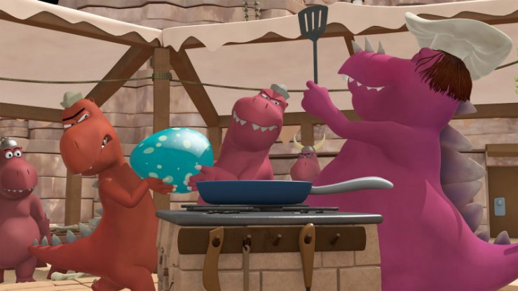 Unglücklicherweise rollt ihnen das Ei davon und gerät in die Hände der Fressdrachen Trutjan und Trutbert, die das Ei zu Omelette verarbeiten wollen. Chef beginnt gerade mit der Zubereitung, als die Schale bricht und eine kleine, süße Überraschung herausschlüpft.