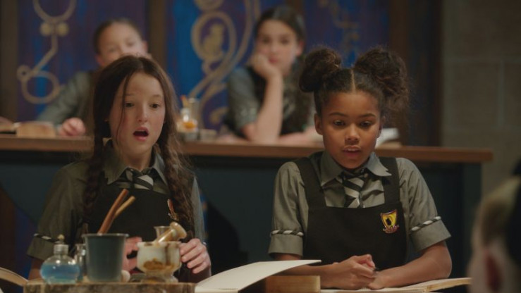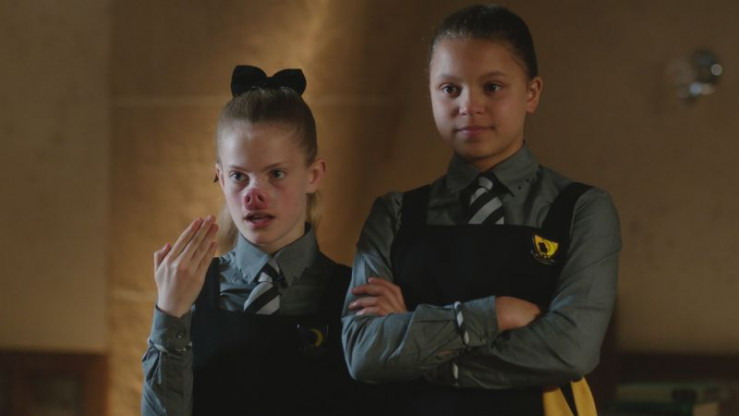 Esther (Jenny Richardson, l.) ist entsetzt über ihre Schweinenase und sauer auf Mildred! Weil diese lausige Hexe nicht zaubern kann, muss sie jetzt so rumlaufen. Drusilla (Tallulah Milligan) steht ihrer Freundin bei.