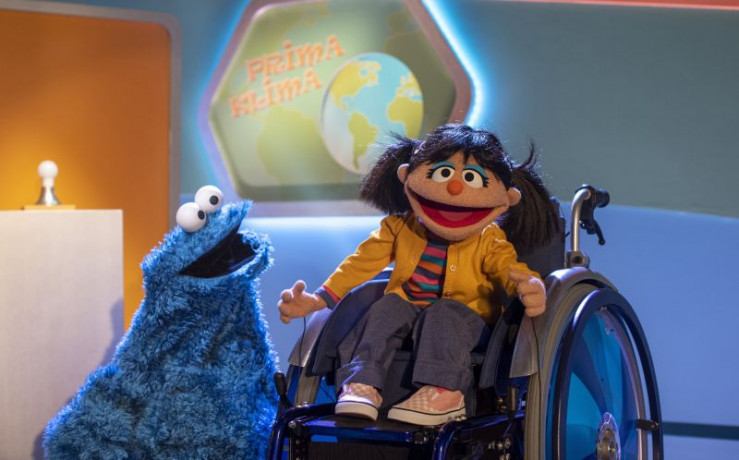 Elin tritt bei der neuen Sesamstraßen Klima-Quizshow "Prima Klima" an und fordert Show-Schwergewicht Krümelmonster heraus.