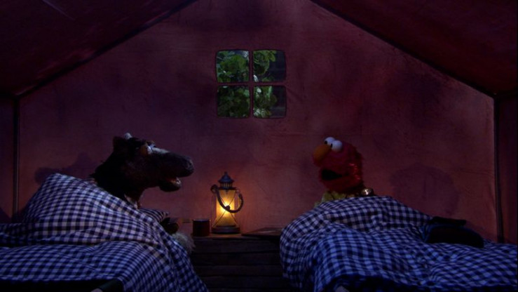 Außerdem wollen Elmo und Pferd draußen übernachten, bekommen aber Angst, weil der Wolf ihnen von einem angeblichen "Schattenmonster" erzählt.