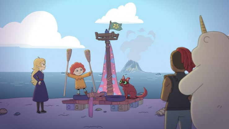 Für ihre Weiterfahrt zum Berg Hekla haben sich Ormhildur und ihre Gefährten ein Floss gebaut. © NDR/Compass Films - Honorarfreie Verwendung gemäß AGB im redaktionellen Zusammenhang mit genannter Sendung bei Nennung "Bild: NDR/Compass Films" einschließlich Social Media Einschließlich Social Media© NDR/Compass Films - Honorarfreie Verwendung gemäß AGB im redaktionellen Zusammenhang mit genannter Sendung bei Nennung "Bild: NDR/Compass Films" einschließlich Social Media Einschließlich Social Media