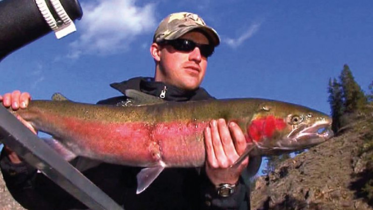 Englische Originalfassung. Der Salmon River in Idaho ist berühmt für herausragendes Fischen. Es ist ziemlich kalt als wir im Februar anfangen, flussaufwärts auf einem teilweise zugefrorenen Fluss zu fahren - alles, um eine große Regenbogenforelle zu fangen. Unser Kameramann wechselt Positionen und versucht sich am Eisfischen.
