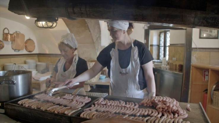 Auf kaum etwas anderes sind die Regensburger so stolz wie auf ihre Wurst. Gleich neben der Steinernen Brücke, direkt am Ufer der Donau, steht seit über 500 Jahren die historische "Wurstkuchl". Dort, wo sich schon im Mittelalter die Regensburger Steinmetze und Hafenarbeiter ihre Stärkung gönnten, ist bis heute vieles beim Alten geblieben: der offene Holzkohlengrill, die hausgemachten Würstl aus purem Hinterschinken vom Schwein und das Sauerkraut aus dem eigenen Gärkeller. Noch immer ist die "Wurstkuchl" in Familienbesitz: In fünfter Generation führt Andreas Meier die besonders bei Amerikanern beliebte "Wurstkuchl", seine Lieblingsbeschäftigung ist dabei die Herstellung des legendären, hauseigenen Senfes.