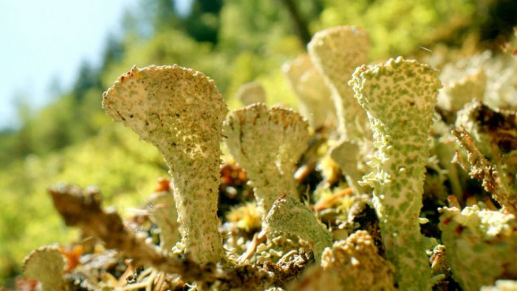 Trompetenflechte. Bizarre Pflanze in Steilhangmooren.