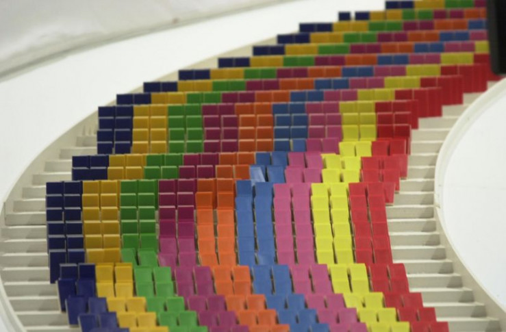 Seit dem 23. September arbeitet ein 90-köpfiges, internationales Team am Aufbau des Domino-Parcours. Am Ende sollen satte 4,8 Millionen kleine, acht Gramm leichte Steinchen die Fläche von zwei Fußballfeldern bedecken. Bei einem Gesamtgewicht von 38 Tonnen ergeben die Dominos aneinandergereiht eine Strecke von 192 Kilometern. Und mit einem kleinen Fingerschnipp werden sie die spektakulärste Kettenreaktion der Welt auslösen. Wie in den vergangenen Jahren auch entscheiden zusätzlich vier Challenges über das Gelingen des Weltrekords.
